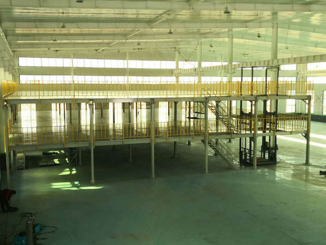 鋼結構平臺亦稱工作平臺,通常是在現有的倉庫場地上再建一個二層或三層的全組裝式鋼結構平臺,將使用空間由一層變成兩層,三層,使空間得到充分利用,貨物由叉車和升降臺的貨梯送上二樓、三樓,再由小車或液壓拖板車運送至指定位置。此種平臺立柱間距通常在三到五米以內,層高可根據具體要求度身定制,廣泛應用于第三方物流,機械制造等各行業。